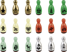 för stämpling av papper, kartong och många andra material - 36 uppsättningar, 6 stycken vardera (20-48 886 50 - 55) - jul - trä, färglackerat - motivstorlek: ca Ø 1,2 cm