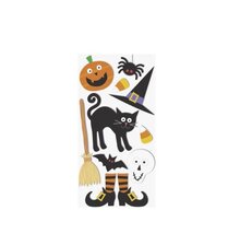1 ark. Arkets storlek: 75 × 165 mm. Kartong, färg: orange, svart, vit, beige. Antal klistermärken per förpackning: 11 st stickers. Med dekorativa Halloween motiv.